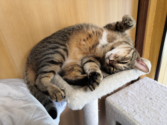基本的に、室内飼いなのですが、嫁さんがリードで1日1回30分くらいリードで外でお散歩しています。