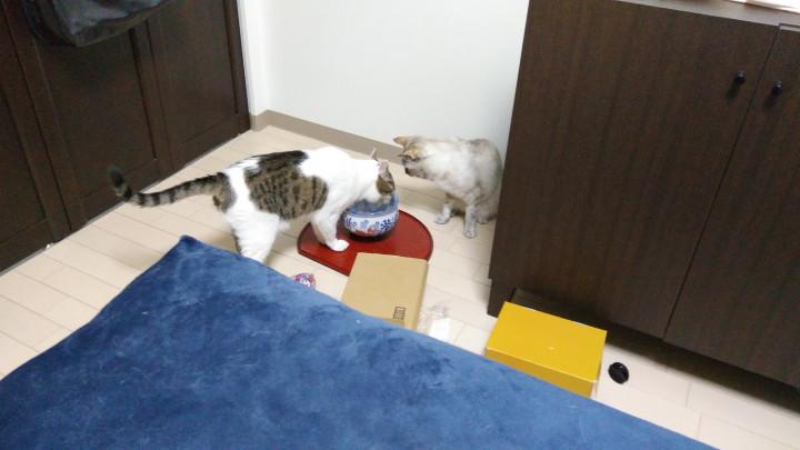 やったー⤴ ニコルも飲んでる(〃´ー`人´ー`〃)