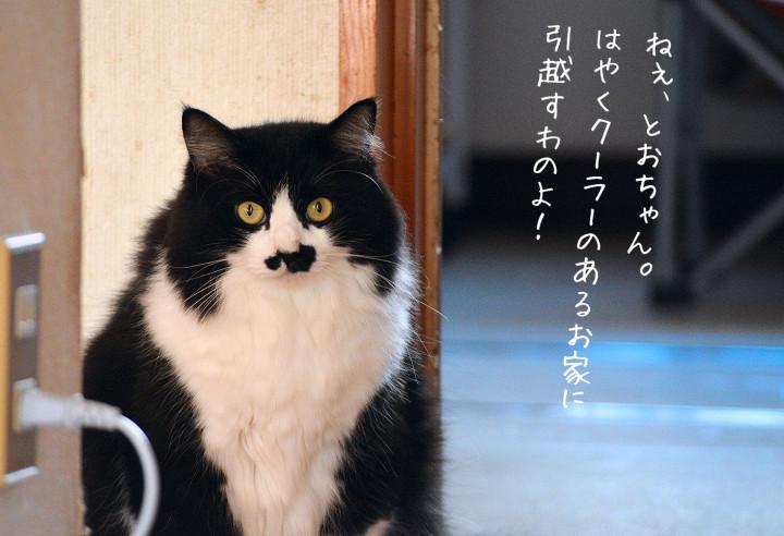 クーラーのついてる家(今はおそろしく旧型のものがあるのだが、通電させたことがない)に引越したところで、この毛の状況が変わるとは思わないけど…我が家も引越しを検討中。