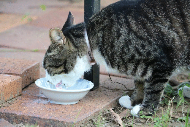 ガブガブ飲むとはこの事よ。顎の下までびっちょびちょ。
