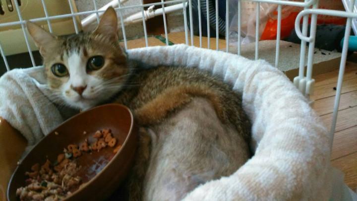 一本の足はまだブラブラで使えないけれど、ご飯もモリモリ食べて、排泄はトイレの枠を持って身体を支えて何故か中ではなくて、外のペットシートでしちゃってます💧