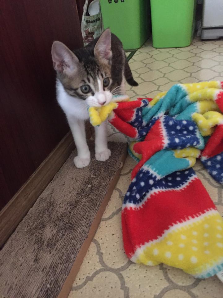 最後に絶賛里親募集中のミィー太くんは、もうすぐ3ヵ月になりますが、いまだに哺乳瓶から日に3回はミルクを欲しがる甘々ヤンチャくれで、お気に入りの毛布を何処でも咥えて周ります。