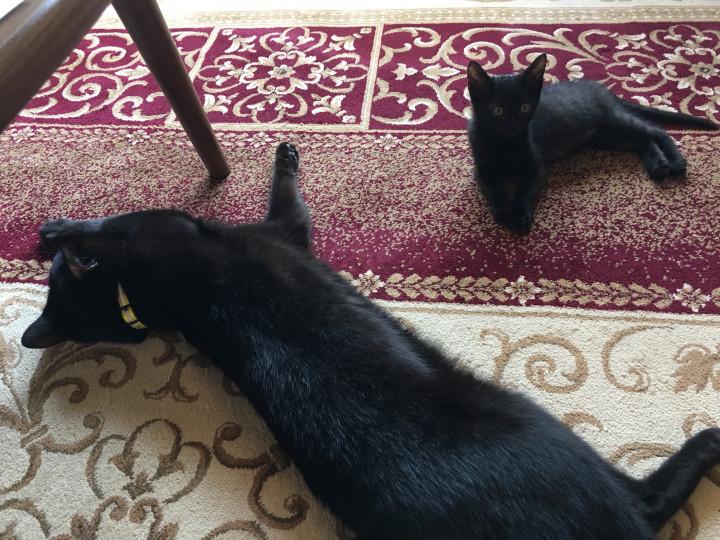 桃子 大和 カン太 3人とも暑いので昼間はリビングでお昼寝です