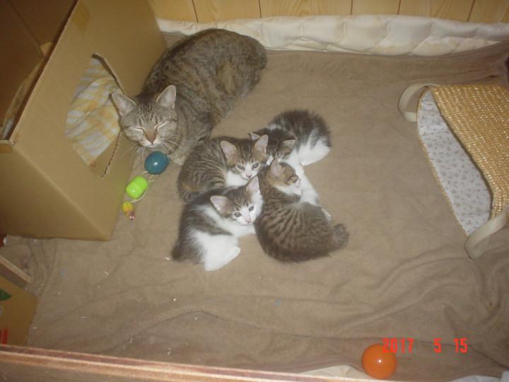元気ちゃんとの出逢いは 今年の4月に我が家の物置きで 外猫のお母さんが出産しました