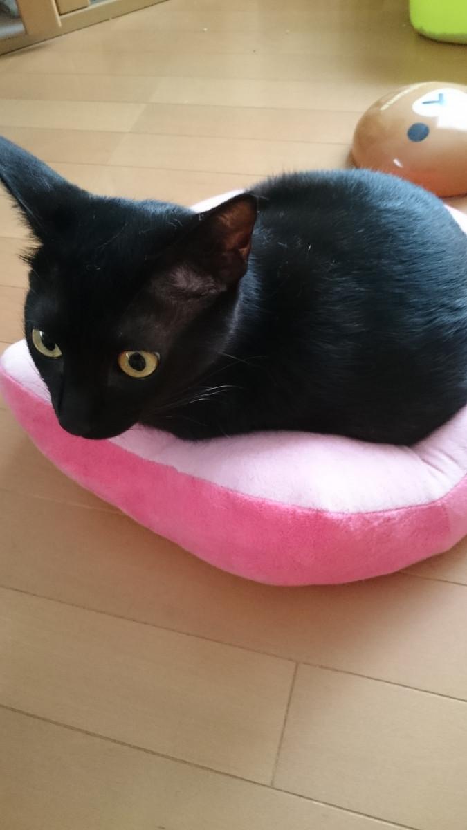 げんが座っているピンクの物体は、私が買ってきた『骨盤引き締め座布団』です。