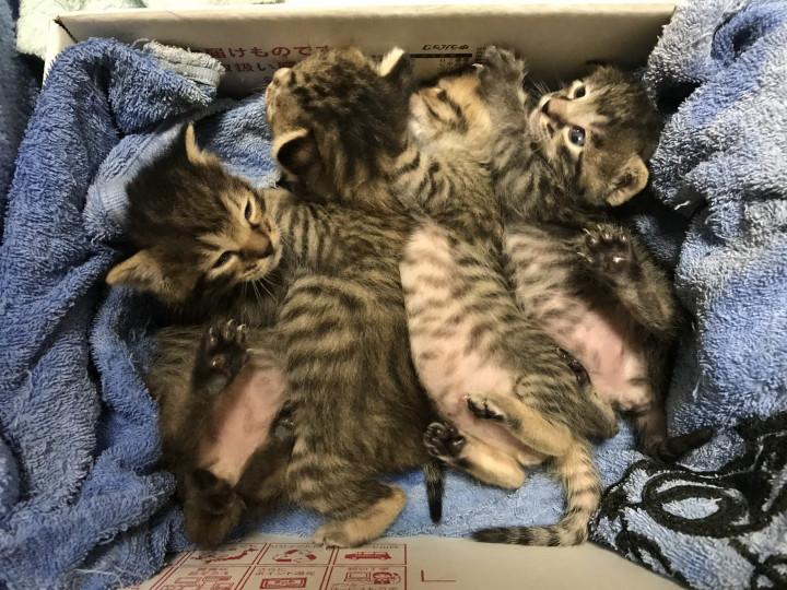 旦那さん、夕御飯を食べるのも忘れて、排泄とミルクの後、2時間仔猫を眺めていたらしいです。