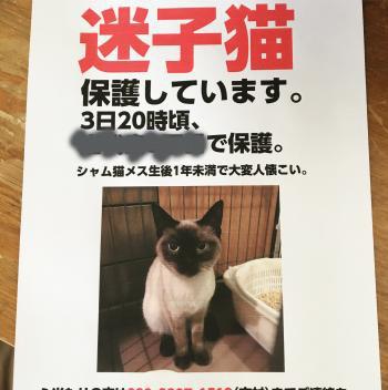 ポスターを貼りながら迷子になったネコを探してる人を探した。