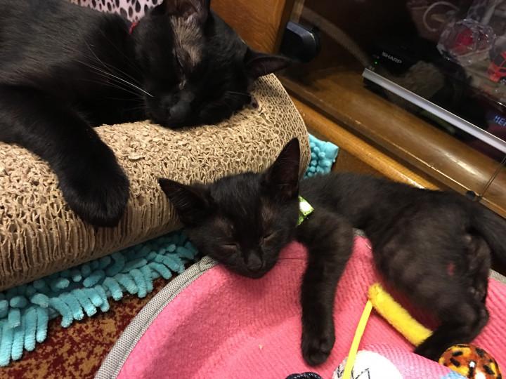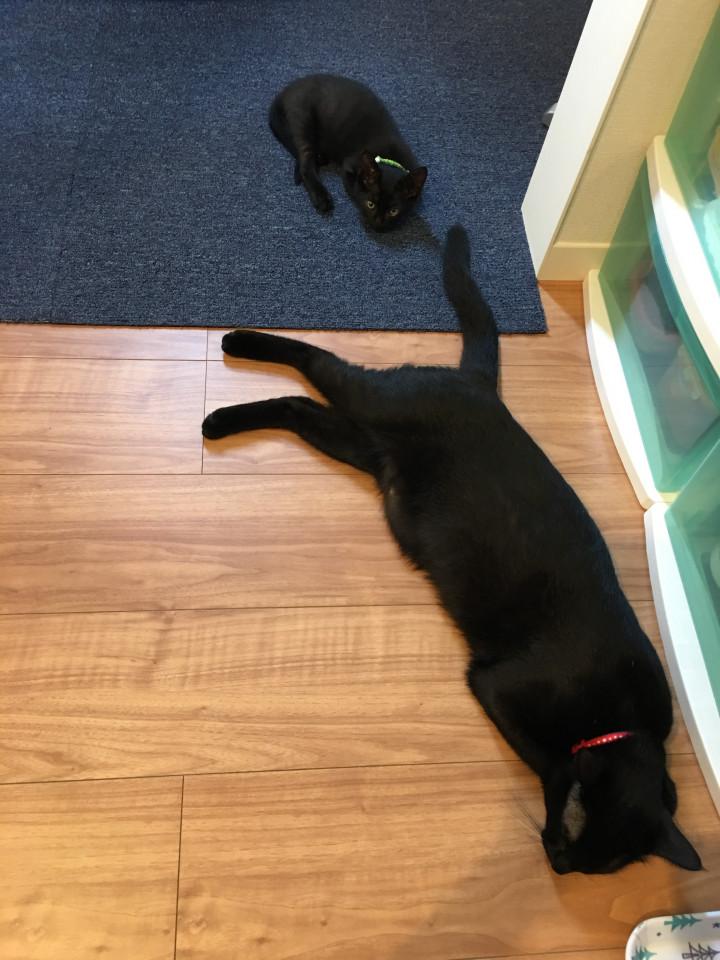 夜は私のベッドに3人来ても…カン太が大和に近づくと まだ嫌みたいで…(*´`@)プィッと逃げてしまいます😭