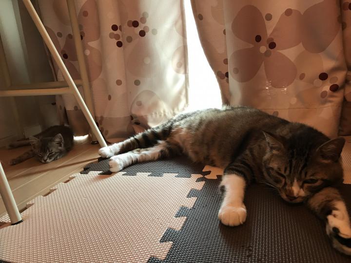 写真は、今日の2人の寝姿。シンクロしてました(笑)
