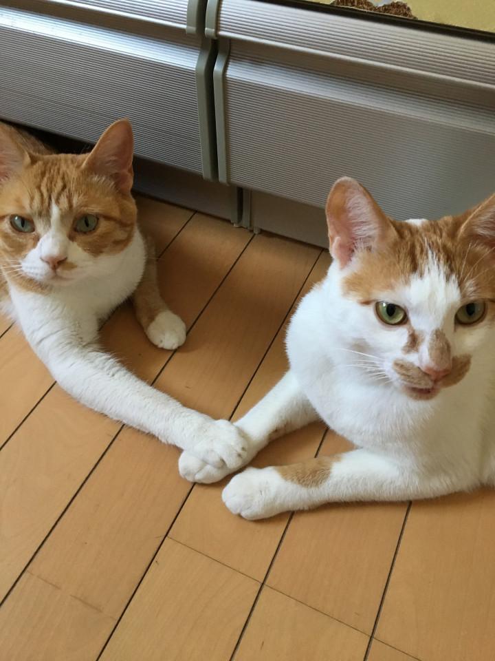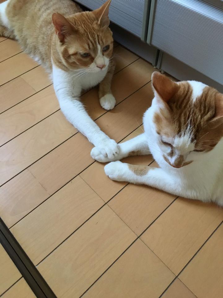 「外しちゃだめだよー」と言うと、ふたり手を重ねながら「にゃー」と何かを訴えかけてきた…。