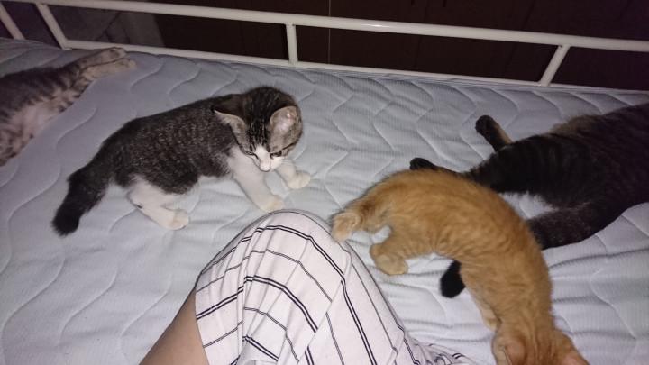 お迎えも4匹で、寝る時も4匹がベッドに集合してくれて…