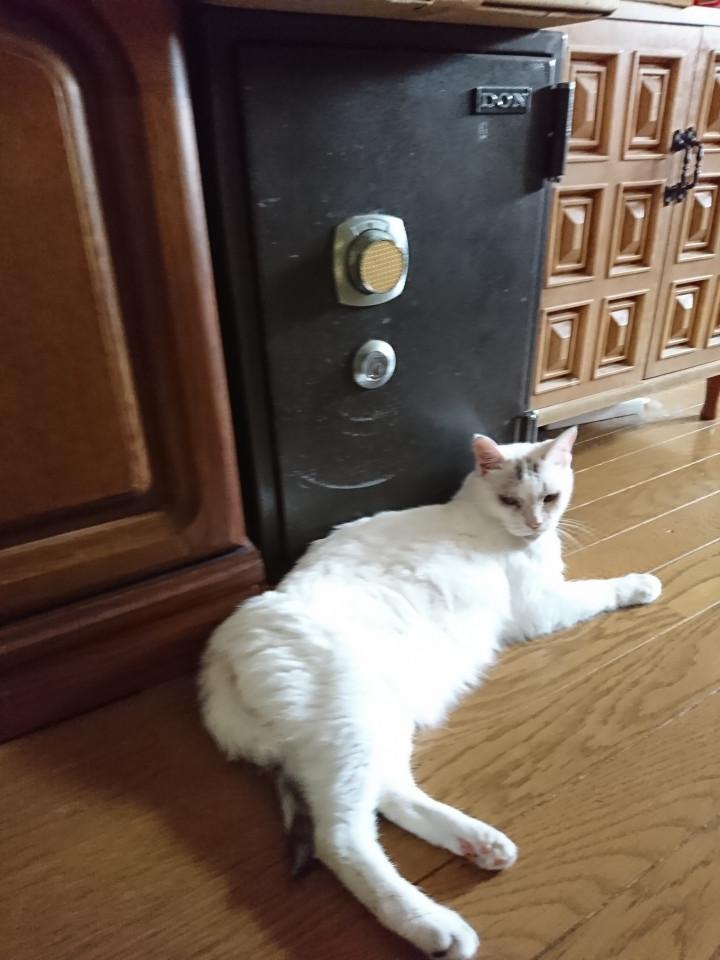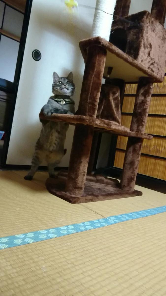 あずかり猫のアドルはじゃらしのおもちゃを破壊中(T_T)
