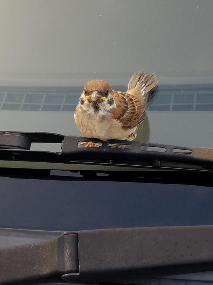 仕事の帰りに、他の人の車の上にいたチュン太郎🐦