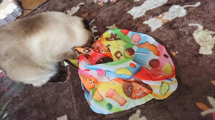 自分が思った感じでキャッチできず、癇癪をおこして噛んで爪を立てる王子大福。。