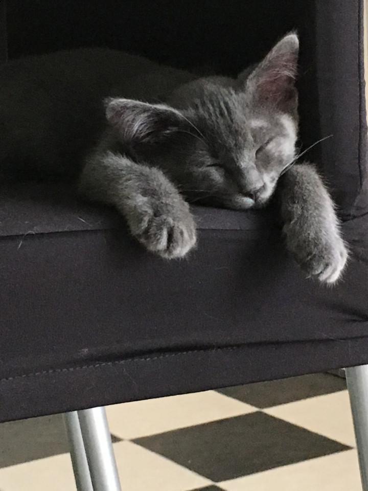 そして顔合わせの時に使ってた簡易ケージの中に寝てるアオ…