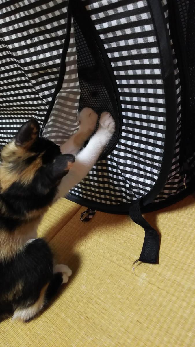 ゲージ外に置いてあるトイレも使えてるし、水飲み場とかも把握して、そろそろゲージも不要かなぁと考えながら、昨日はまだ夜だけゲージに。