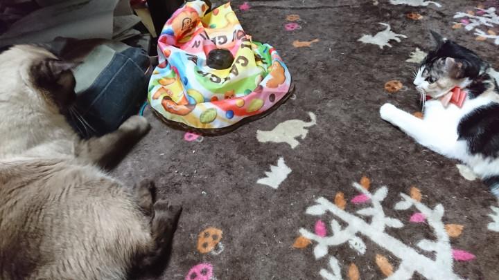 遊び方としては、大福は目で獲物を追っかけて、小春は直接攻撃なんですねっ。