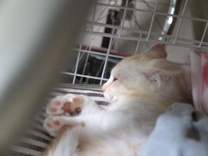 30分ほど撫で繰り回して、カリカリと水を入れて、ケージを閉めた。