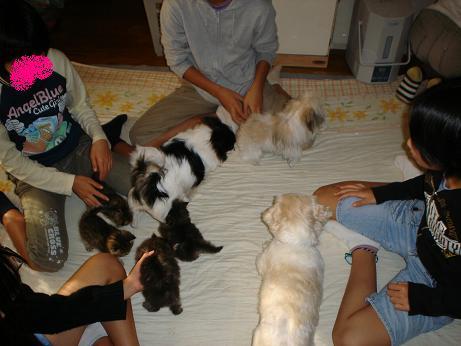 まずうちの猫2匹と仔猫4匹、犬2匹と春に生まれた仔犬が遊びに来