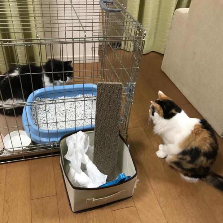 むぎちゃんは相変わらず、一定の距離感を保ったまま、両者見合ってます。むぎちゃんの食欲があまりないのが、気になりますが…