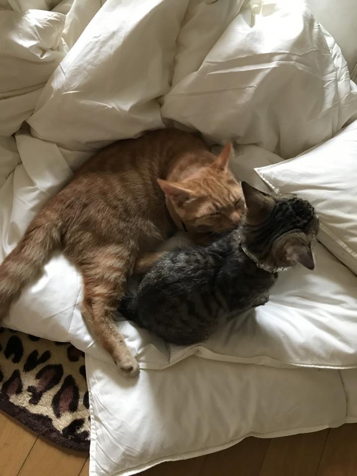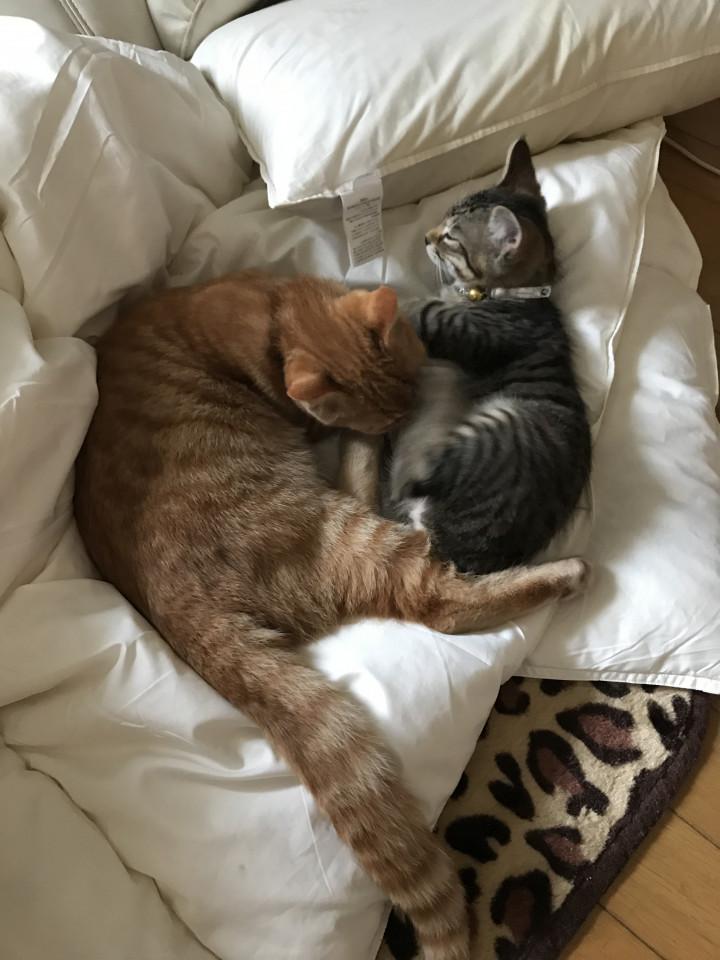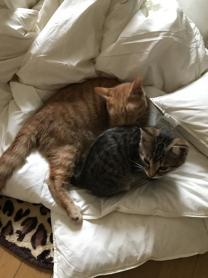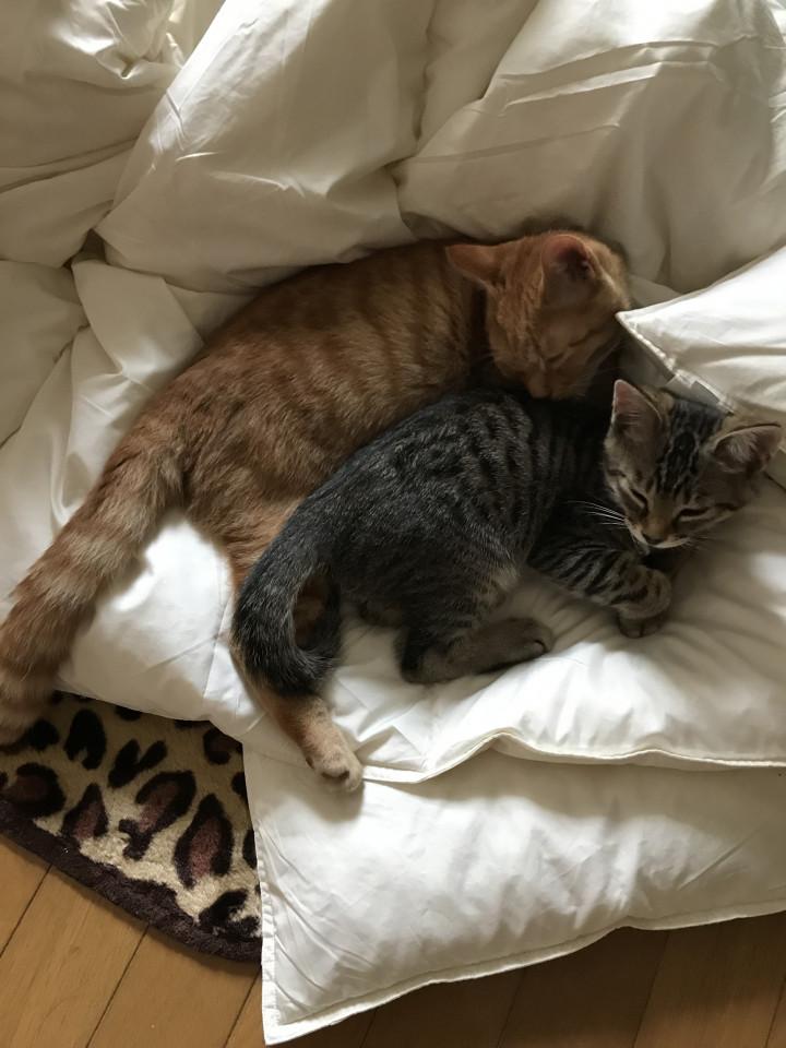 うちの息子達はいつもふかふか羽毛ぶとんのうえ(笑)