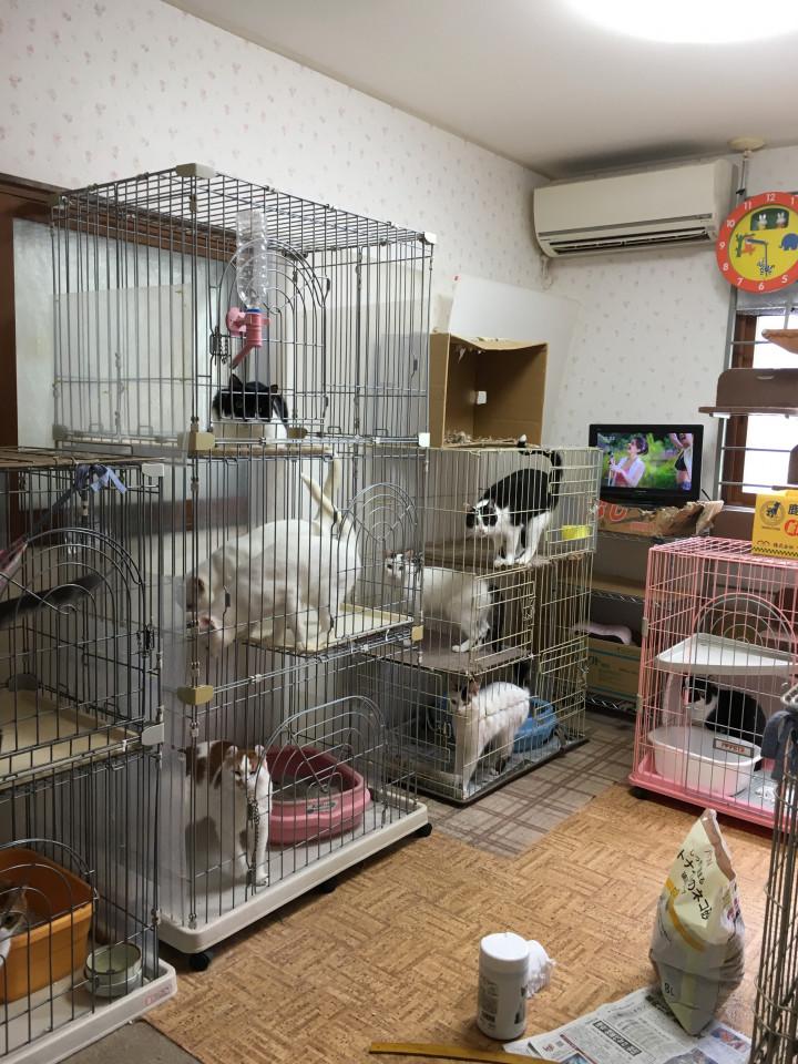 多頭飼育なので食事やトイレの確認には、やはりケージが楽です。