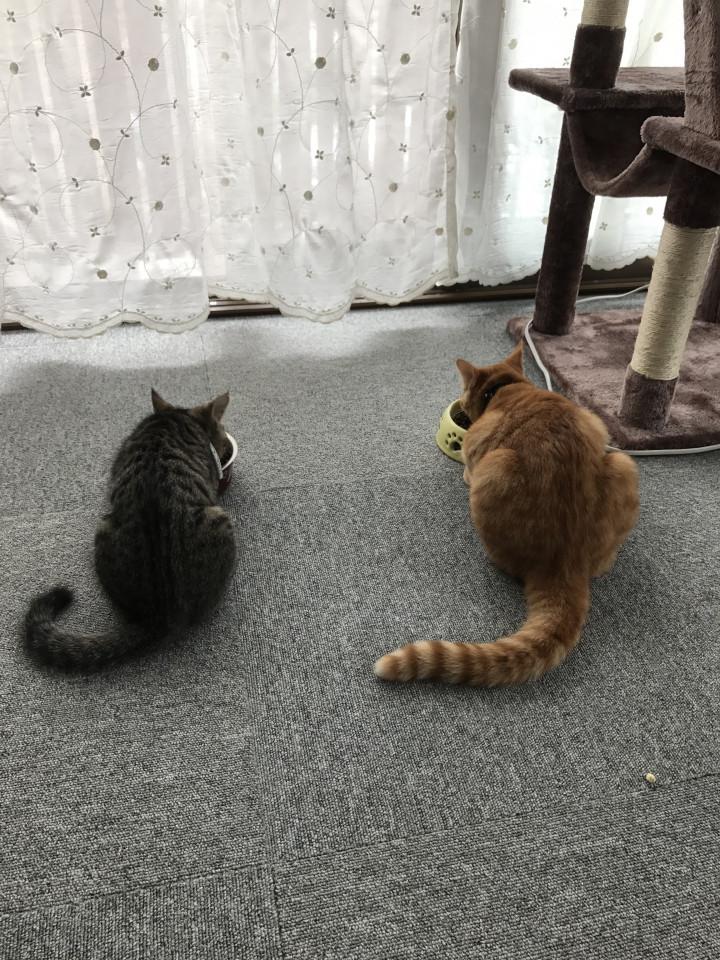 お待たせ朝ごはんな2匹がっついてる(笑)(・ω-`;)