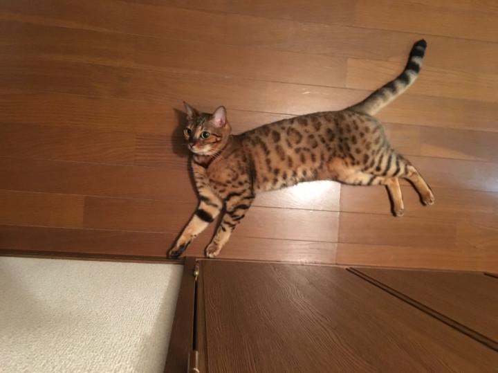 なぜかお猫たちは、エアコンついてない廊下に落ちてます(プーマ寝?)