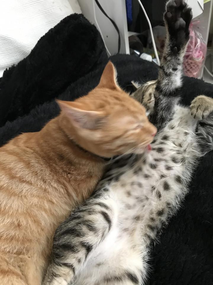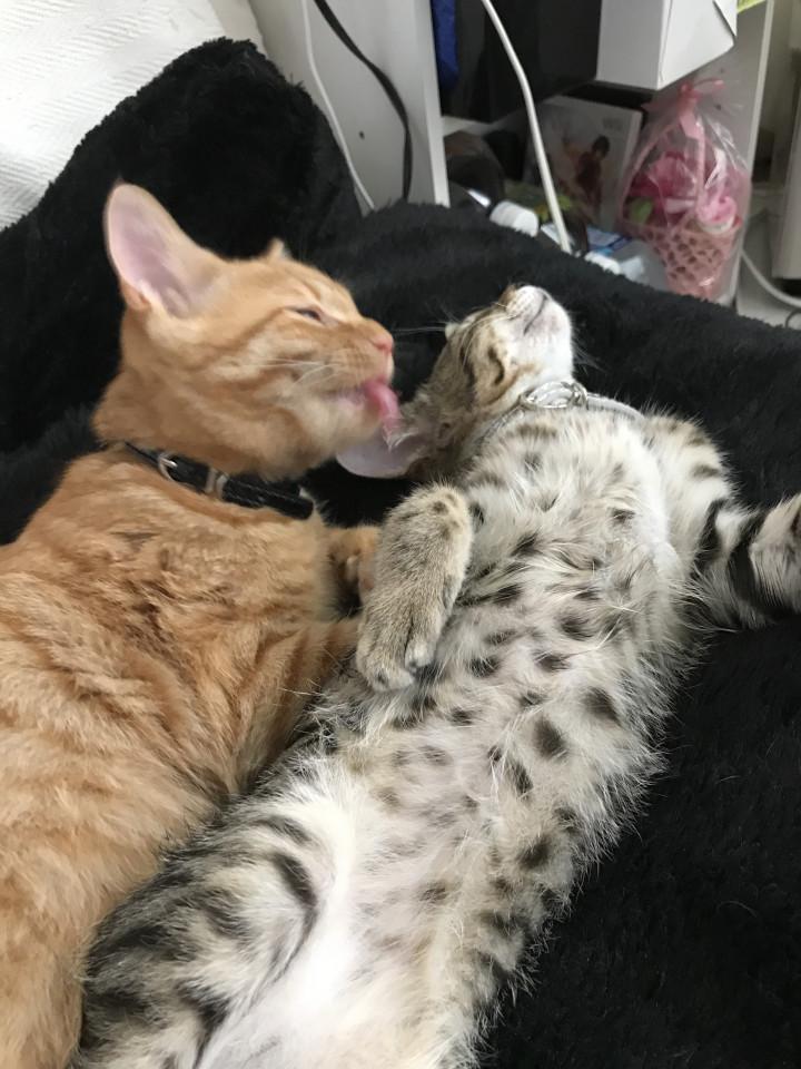 お食事後は大事な弟の毛繕い