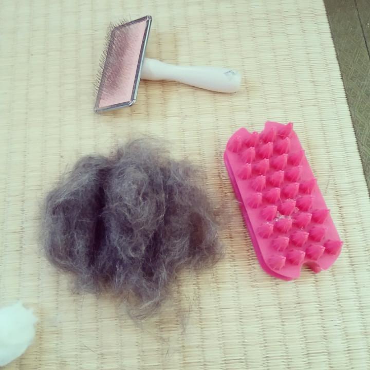 ものの5分でこんな感じ。撫でるだけでも、ふぁさ〜って抜けて舞います。