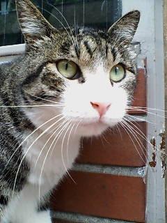 こっそりと前に回ってパチリと一枚。ちょっとビックリ顔の千代田区富士見の猫