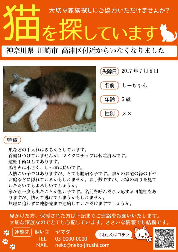 このたび、迷い猫掲示板に投稿していただきました内容を元に、捜索チラシ用のPDFファイルをダウンロードできるような機能ができました。