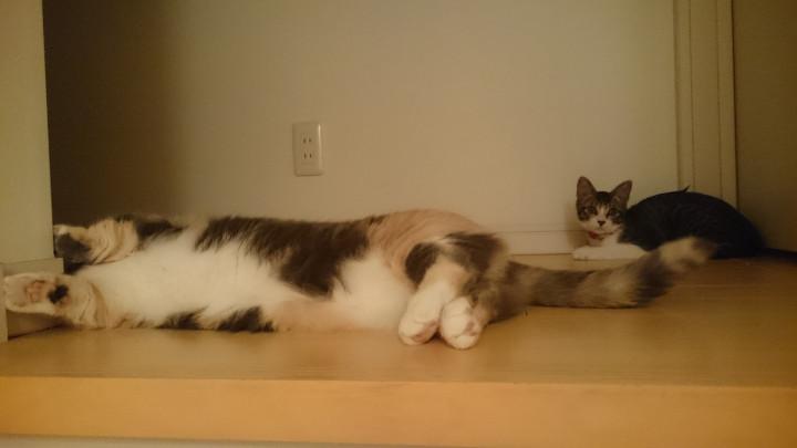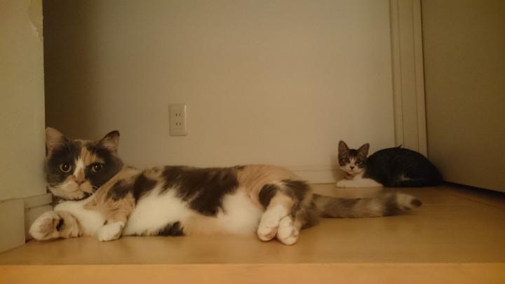 くぅちゃんも一緒に薄暗いところで、こちらを見下ろしています。