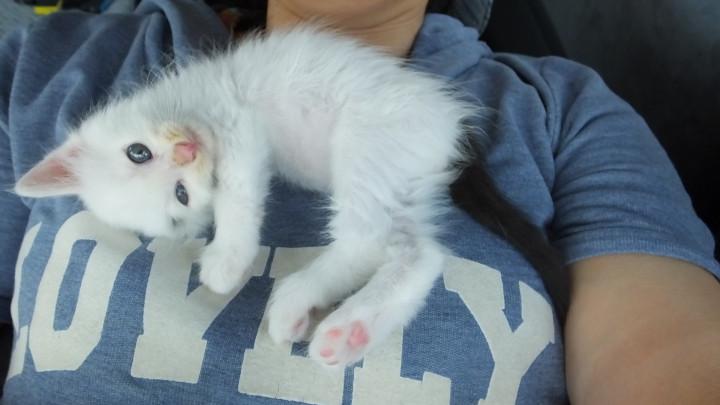 新しいおうちにつくまでの移動中椅子を倒して横になった私の首の周りにスリスリしながら遊んでました。