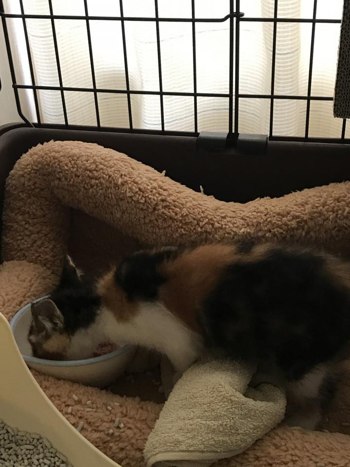 まだ食べてる途中なのに、もっとー、と言いたげな顔。