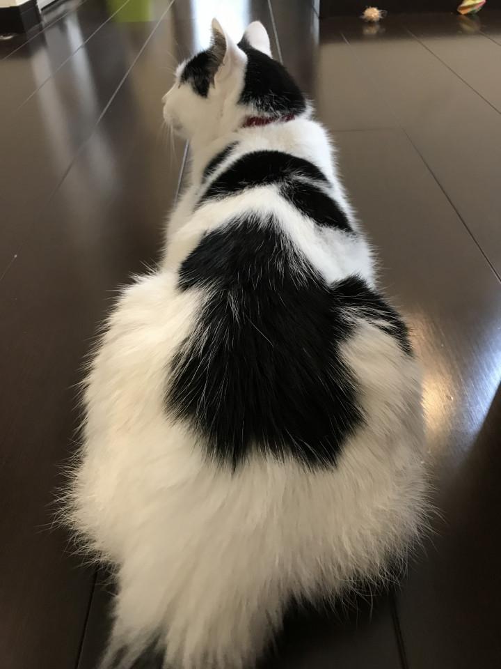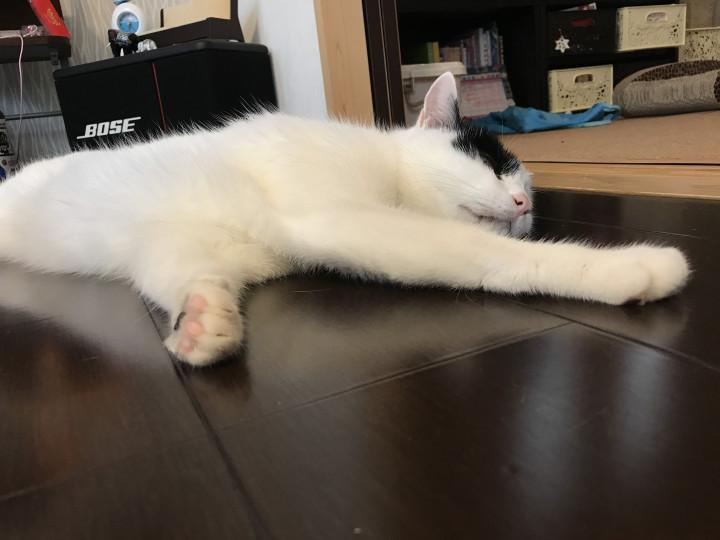 最近フローリングの床の冷たさがお気に入りにのテン。