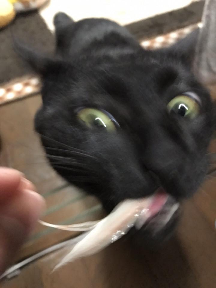 ねこちゃん用カニカマが好きすぎて顔怖い…