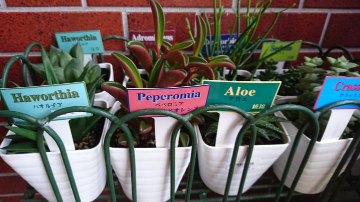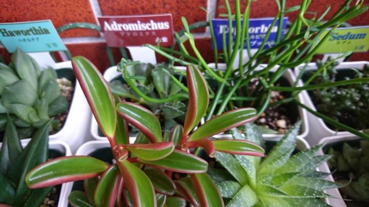 ハオルチア:宝草、ハオルチア:風車、アドロミクス:永楽、ペペロミア:グラベオレンス、ユーフォルビアみるくぶっしゅ、アロエ:綾錦、セダム:玉連、クラッスラ:星乙女の面々だ