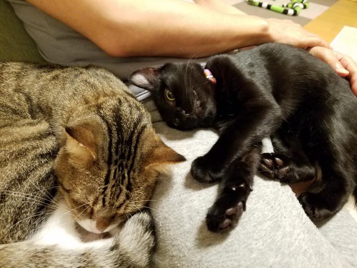 サクちゃんを迎えた時に一度は家族記念日ができたんですが、訳あってポンちゃんを迎えることになり、昨年の夏の三連休からカリタ(おかさん)、ダンナさん(おとさん)、ドラくん(長ニャン)、ニコちゃん(次ニャン)、サクちゃん(三ニャン)、ポンちゃん(お嬢)の家族となりました。