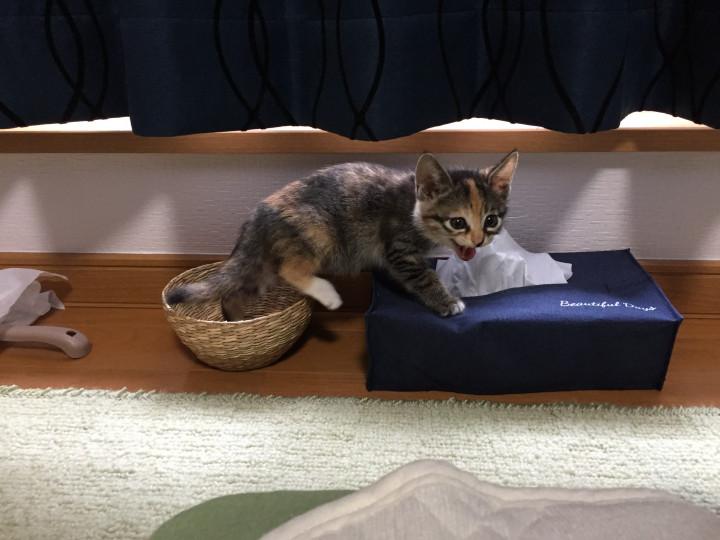 まだまだ警戒心が強く小さなお口を大きく開けてシャー(^^;) それでも部屋の中を散策する