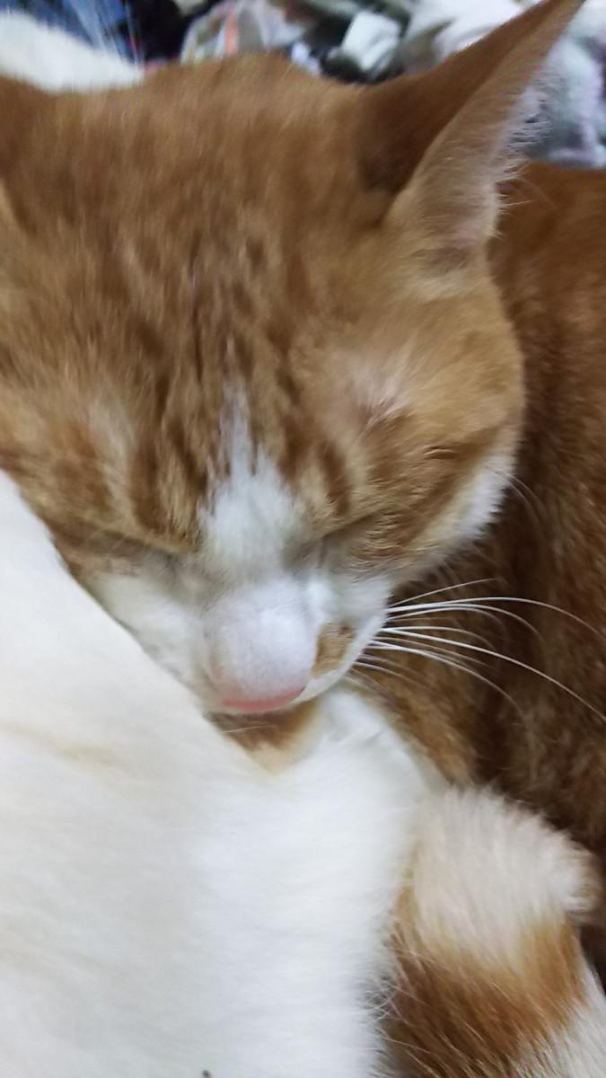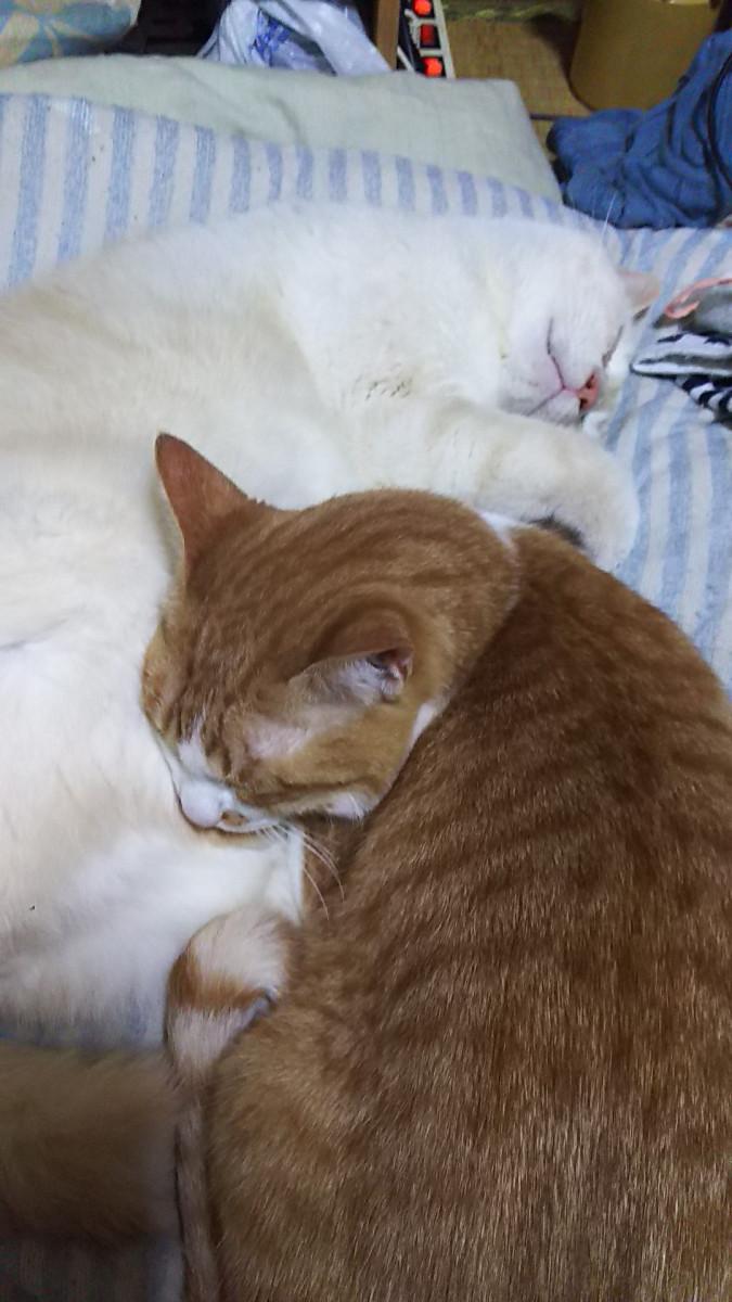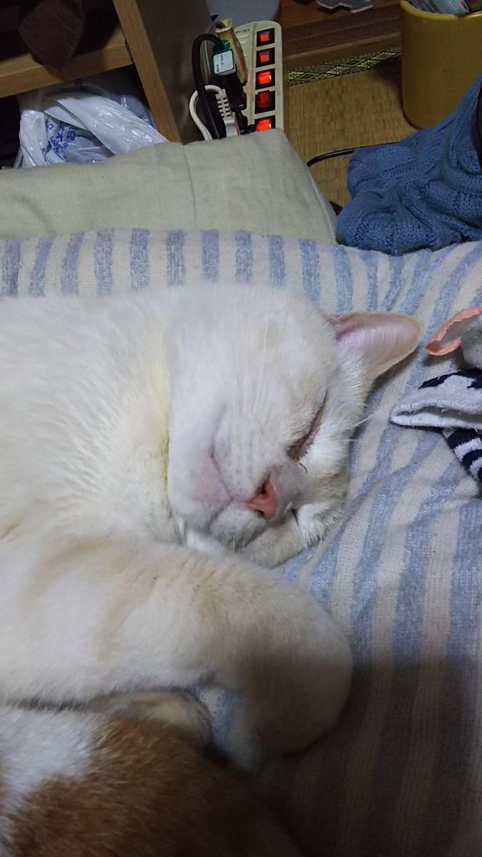 にゃ太郎君の側で寝始めてしまい