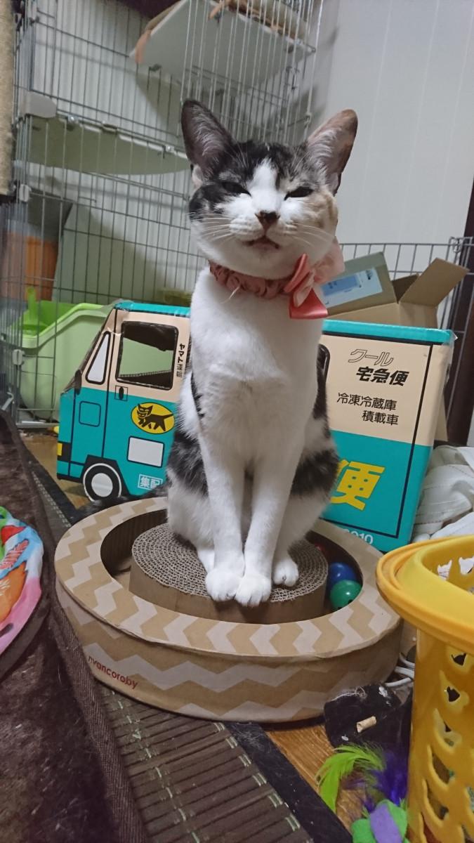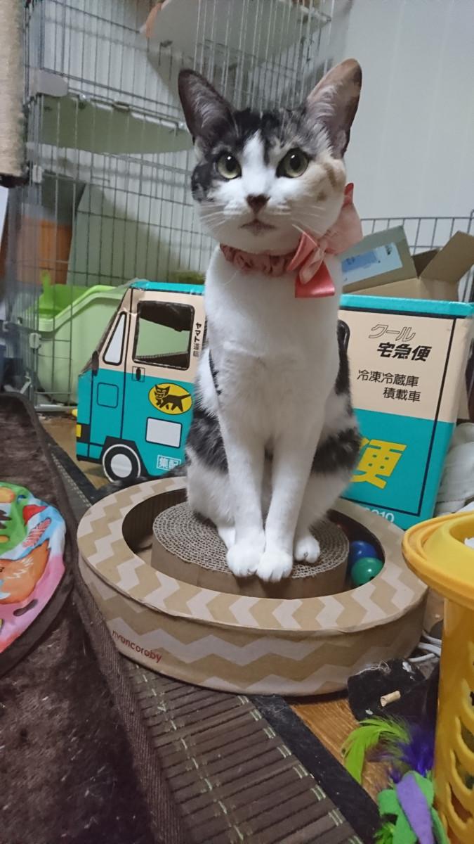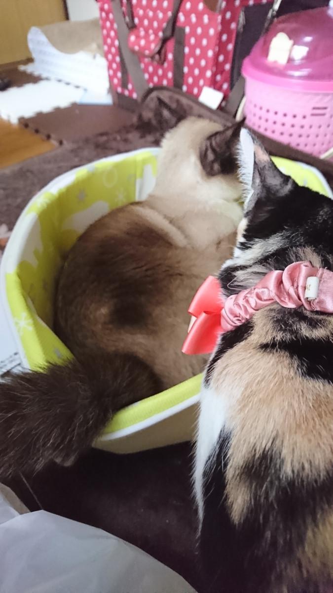 大福、小春のかまえ合戦の猫パンチを繰り広げ大福が首輪の鈴をぶっ飛ばしました(。´Д⊂)