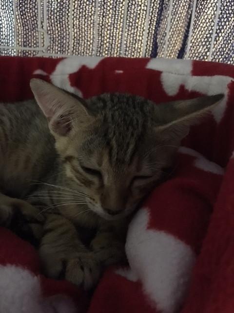 我が家に来る日に風邪をひいてしまって保護主さんのお宅で治療中です。
