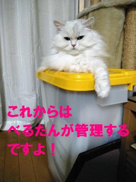 ひめが「お腹すいたーーーっ!」と騒いでも、べるがストッカーの上で寝ているので
