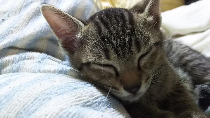 肉球🐾タイムが終わるとトラジ君はスヤスヤとお休みになられました(笑)