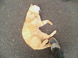 起きたと思ったら足元でごろごろ~んです。この猫には何度も遊んでもらったことがあるんですよ。