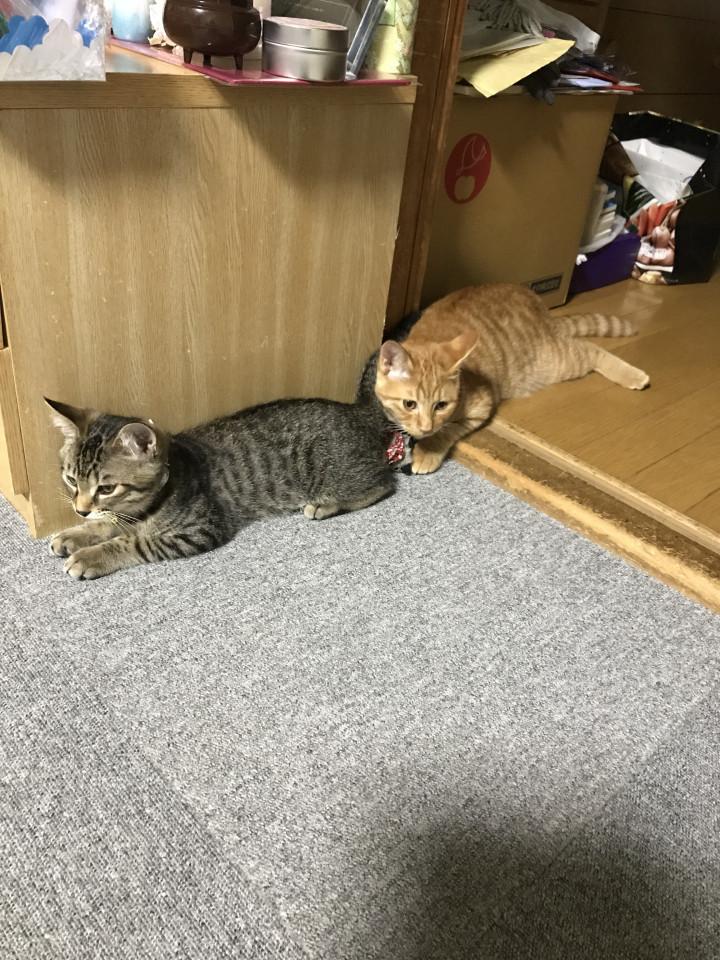 長男 カイン 2017年3月7日 茶虎 去勢済み ♂ マイクロチップ済み フード ヒルズk/d腎臓ケア 朝晩ラプロス 1日60g 次男 アベル 2017年4月22日 雉虎 去...