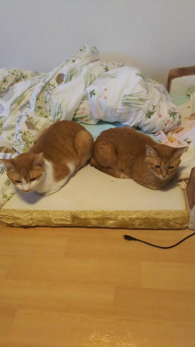 八の字に並んで落ち着く二匹。