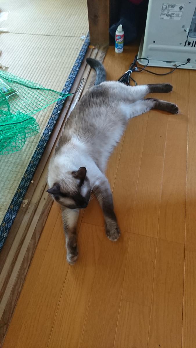 大福は右へ左へと動く私の後ろを追いかけ回してぐったりしてます。