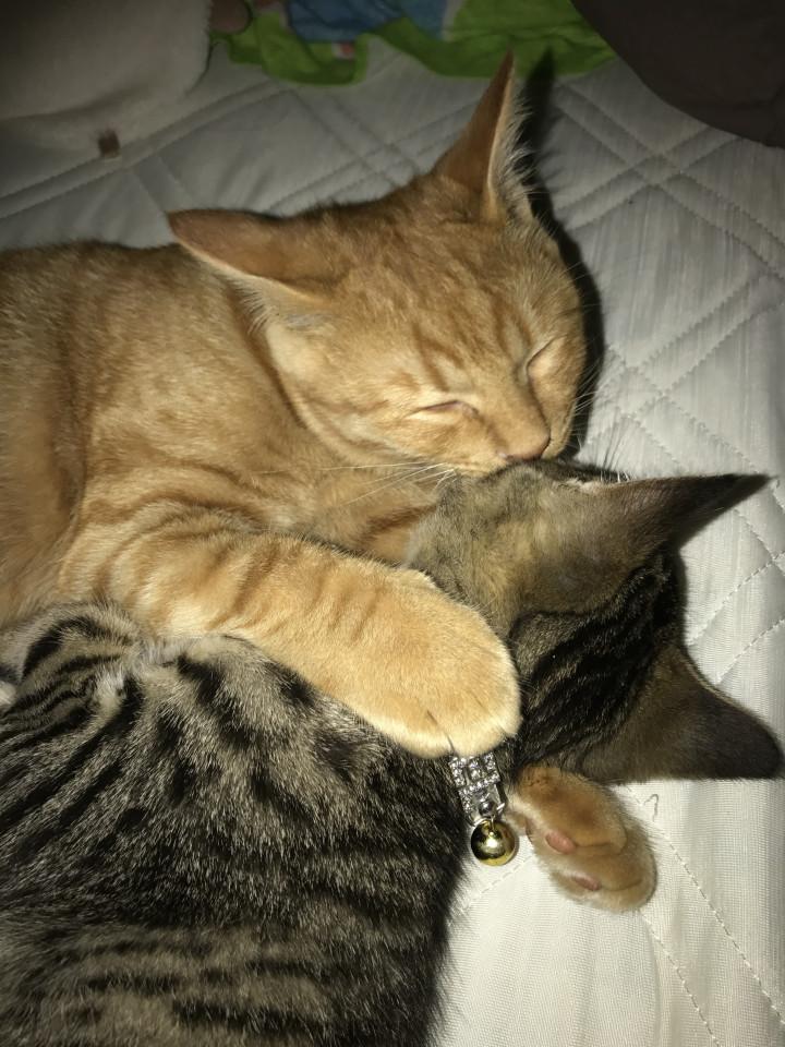 長男 カイン 2017年3月7日 茶虎 去勢済み ♂ マイクロチップ済み フード ヒルズk/d腎臓ケア 朝晩ラプロス 1日60g 次男 アベル 2017年4月22日 雉虎 去...